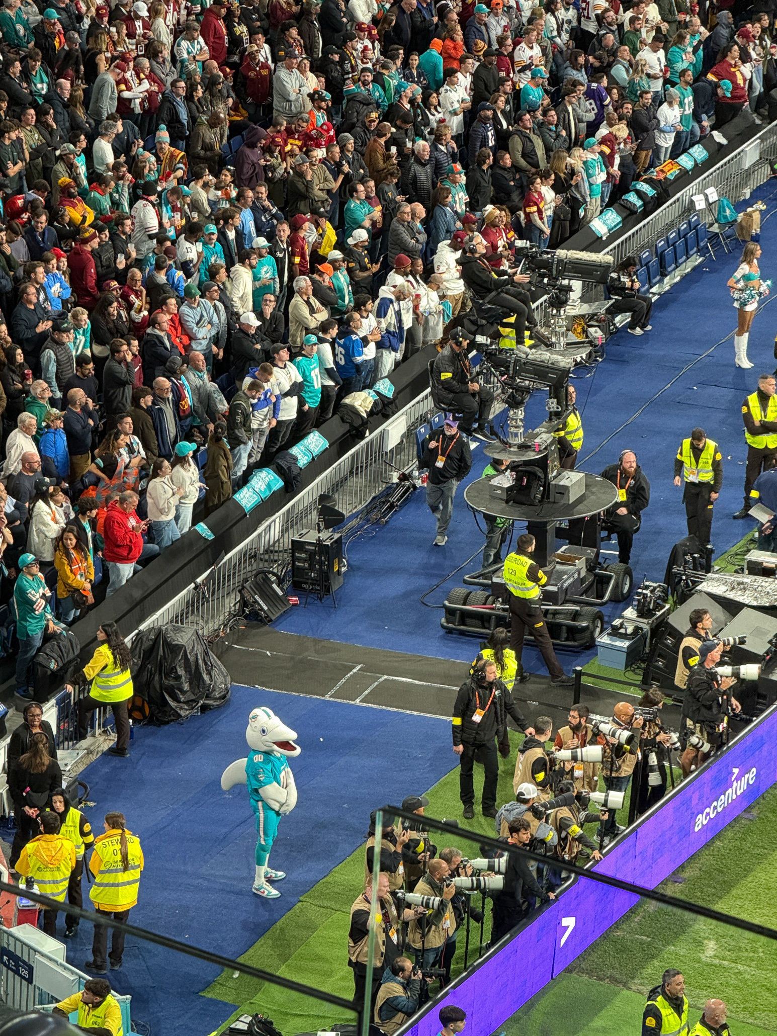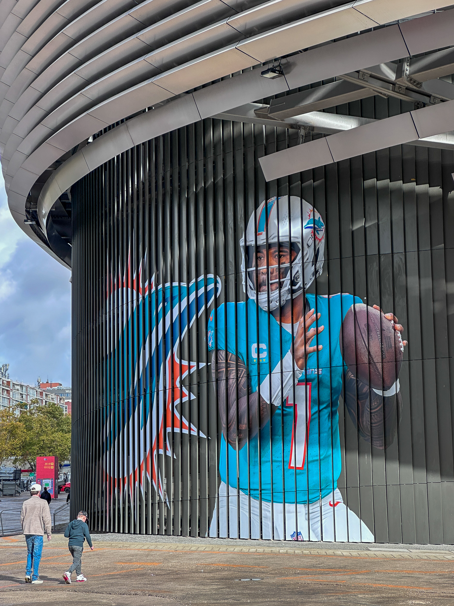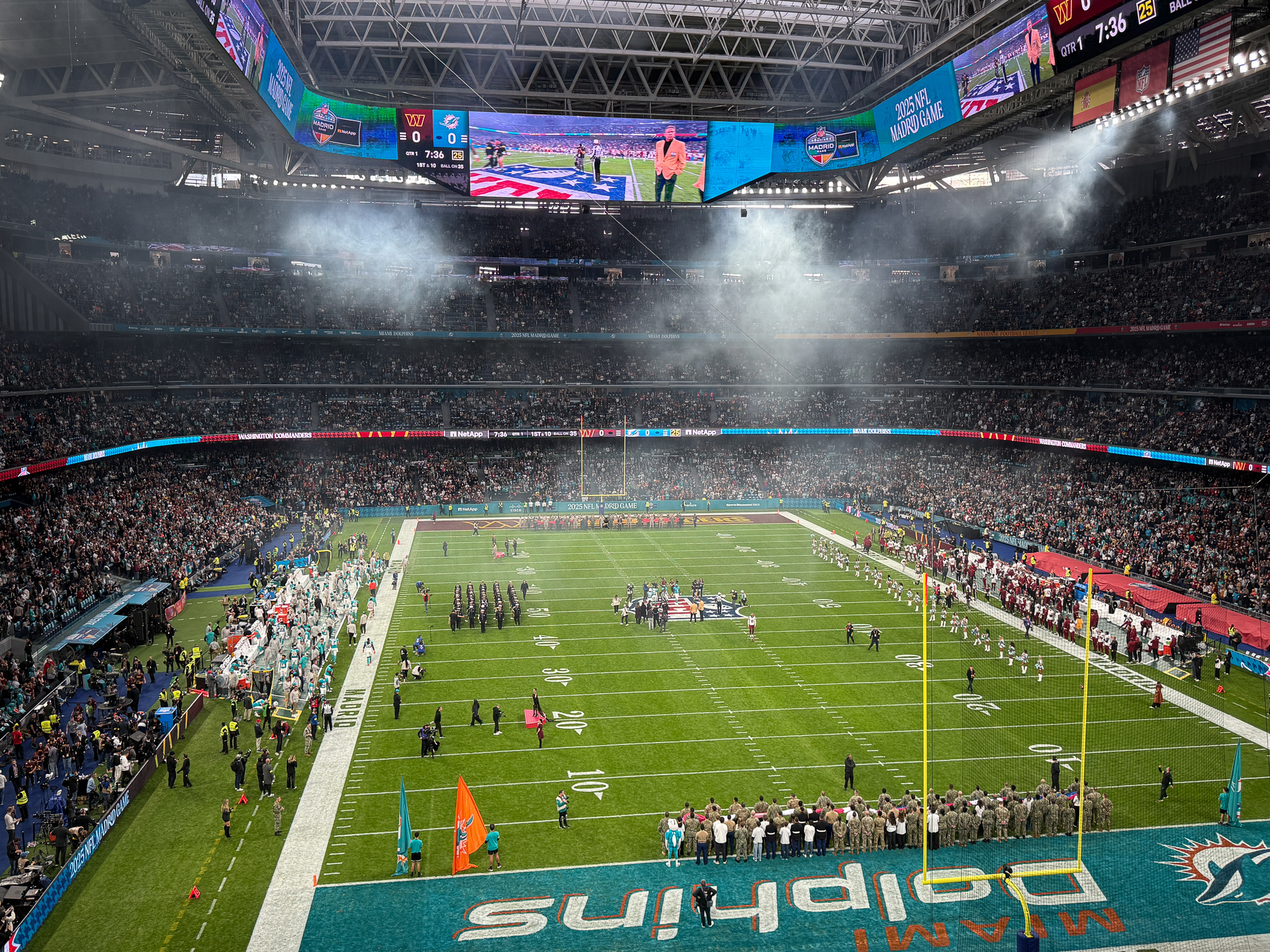 As mentioned in yesterday’s post, Big Boy and I headed to Madrid to watch the Miami Dolphins play the Washington Commanders in the 2025 Madrid Game as part of the NFL’s international series. To give you some impressions of this fantastic event (with the right team winning 16:13 in OT), here a few images from and around the game. Fins Up!
